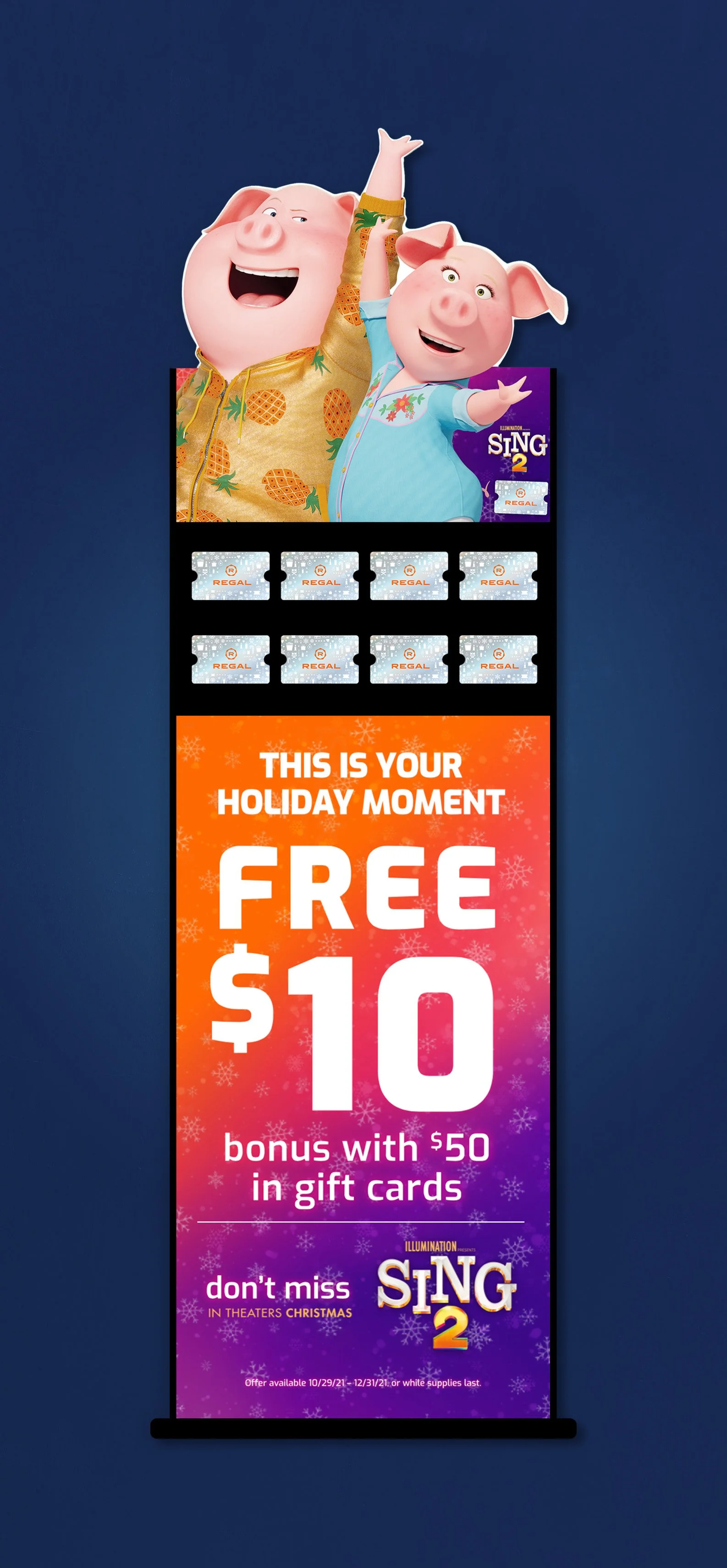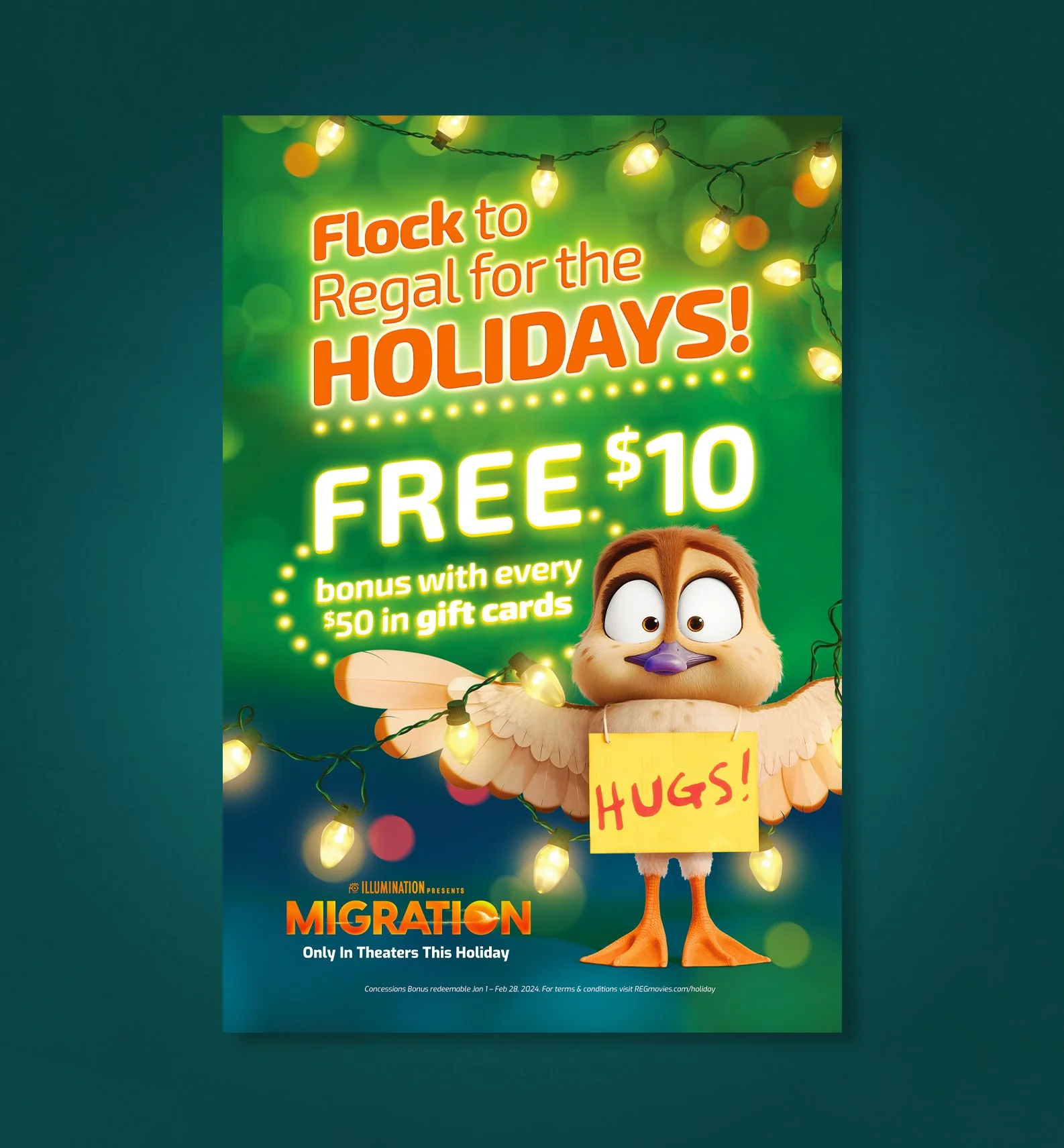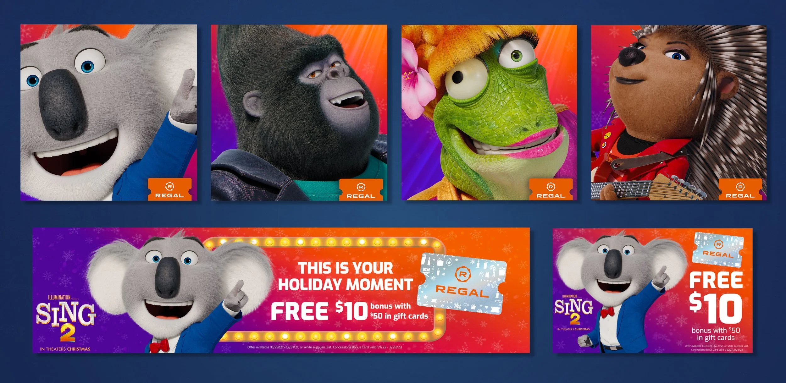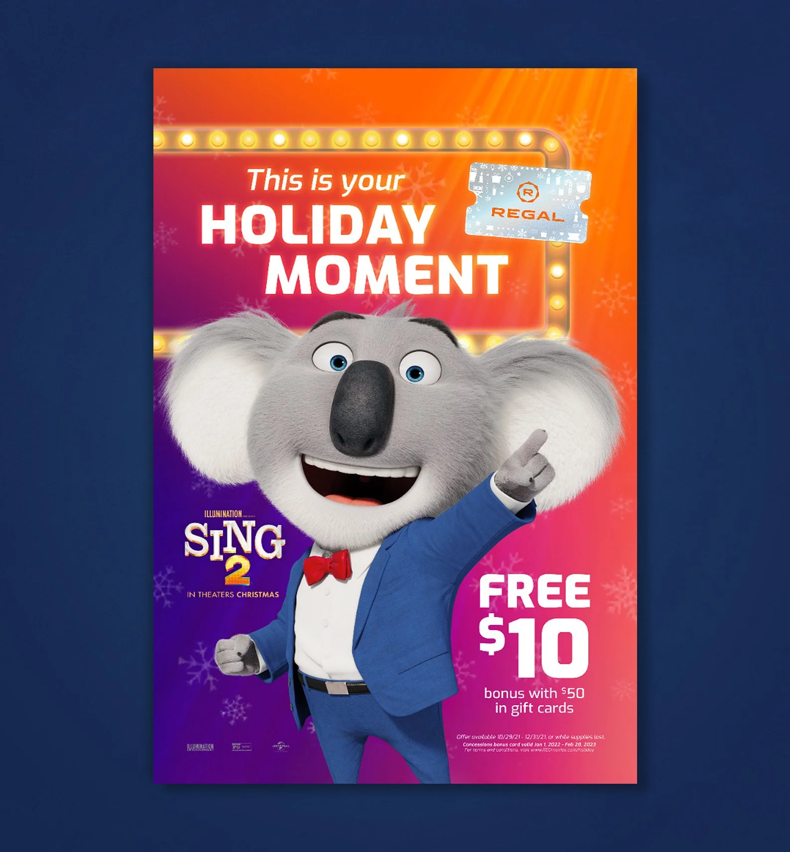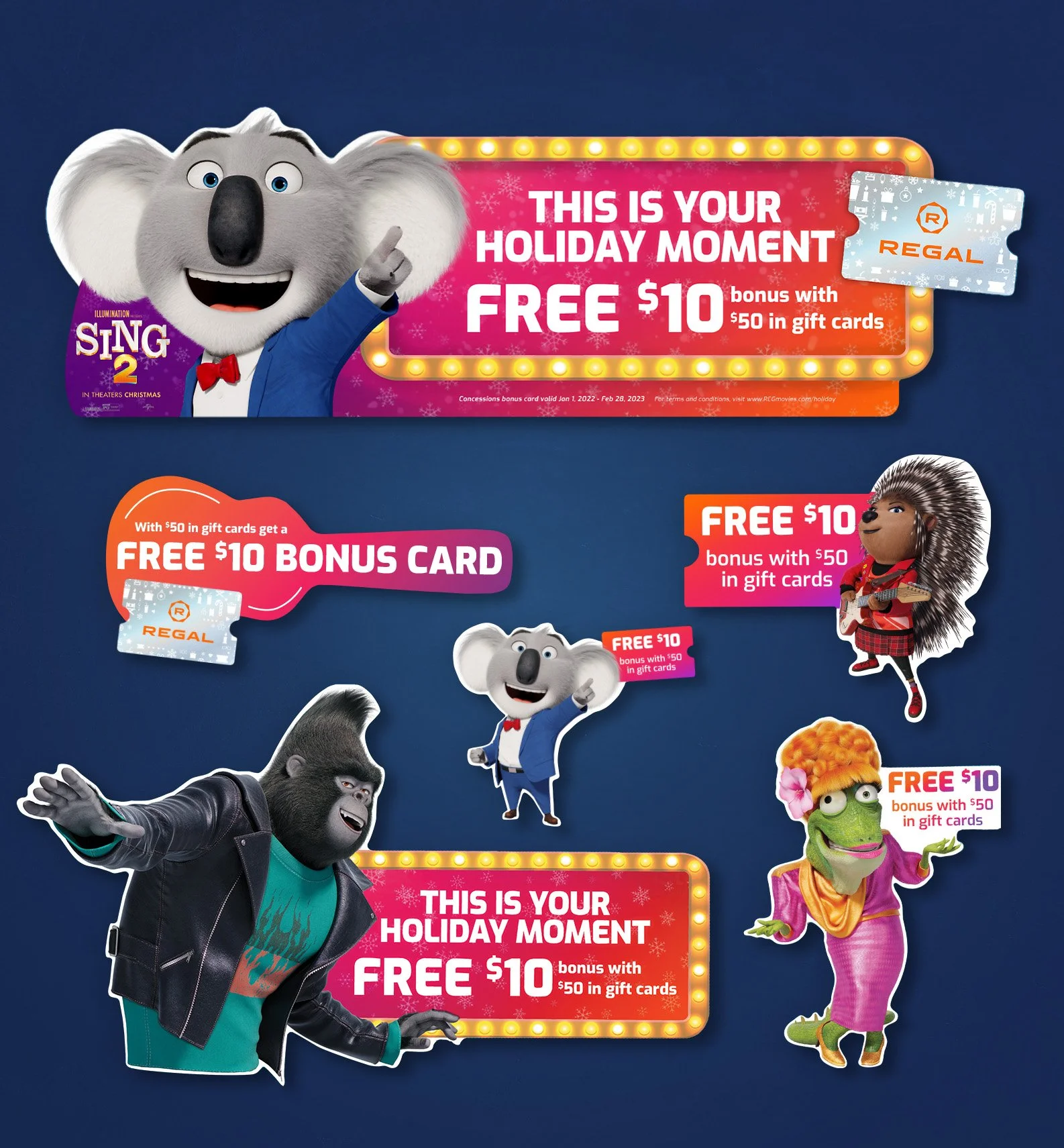 Annual Regal Holiday Gift Card Offer Campaign sponsored by Universal Studios (Illumination, Dreamworks).